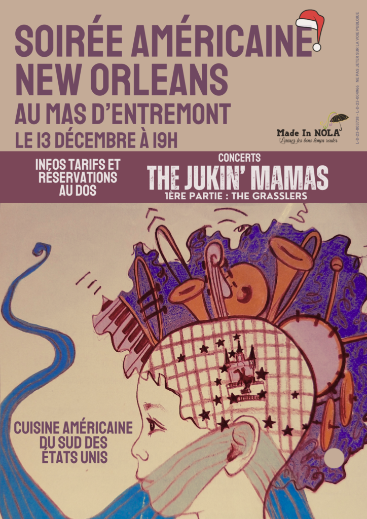 Soirée Américaine : Cuisine du Sud des Etats Unis et Concert The Jukin’ Mamas. Le 13 décembre 2025 au Mas d’Entremont à Aix en Provence