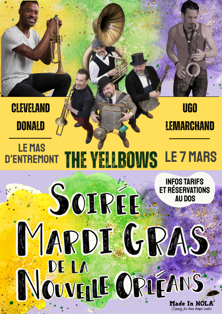 Venez découvrir le Mardi Gras de la Nouvelle Orléans avec sa cuisine, sa musique et l’ambiance qui va avec ! RDV à parti de 19h !